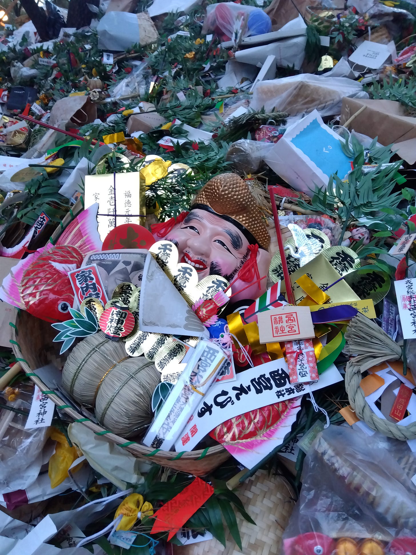 何をするの? ☞笹(福笹)を授かる。そこに「小判」「米俵」「鯛」「宝船」などの縁起物(吉兆)を付けてもらう→ 店や会社に飾って「今年も頼んます!」という感じ